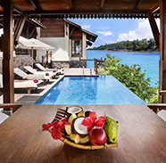 Located on Round Island, within the Saint Anne National Marine Park, the Enchanted Island Resort truly lives up to its name. This luxury hideaway with exclusive villas is just a fifteen-minute speedboat ride from the main island of Mahe and is surrounded by turquoise seas. The resort is comprised of ten private villas, each designed to complement the surroundings and to reflect the romantic charm of old Seychelles. Every villa has a private pool on a private deck, where guests can take a dip or relax on one of the comfortable loungers. Fine dining is available at the resorts main Bounty Restaurant, at which the island chefs prepare a la carte dishes for every mealtime while the Castaway Bar is the top spot for aperitifs and exotic cocktails. Private dining is also available, with breakfast in bed, beach barbecues, and lunch on a terraced gazebo being some of the most popular choices. Enchanted Island may be small, but there are plenty of activities on offer to guests. The resort has an outdoor swimming pool as well as a water sports centre, while a well-equipped gym contains the latest in cardiovascular equipment. More leisurely pursuits include shopping in the islands boutique store, or enjoying one of the many restorative massage treatments at the Serena Spa; alternatively, use the daily boat transfer to Mahe to see the sights.