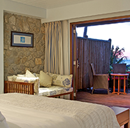 68 rooms and suites amidst verdant greenery set on a picturesque beach. All have: